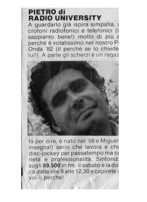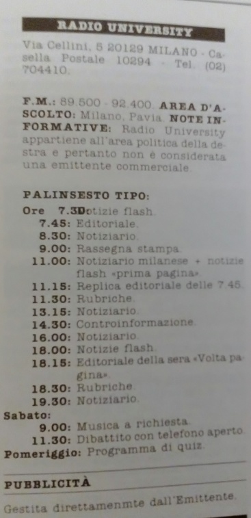 nessuno chiamò per avvertire il disagio di quelle tre note ripetute in continuazione : radio University ebbe una breve agonia e cessò nel 1986