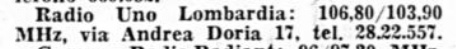 Via Andrea Doria 17 a Milano ,utilizzando le frequenze 103,900 e 106,800mhz.