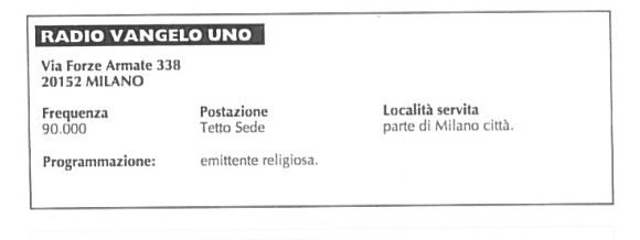 (sito tuttora in Via Forze Armate 338) l' emittente