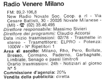 modificando il nome in Radio Venere Milano e trasferendo gli studi in Via Cesae Battisti 30.