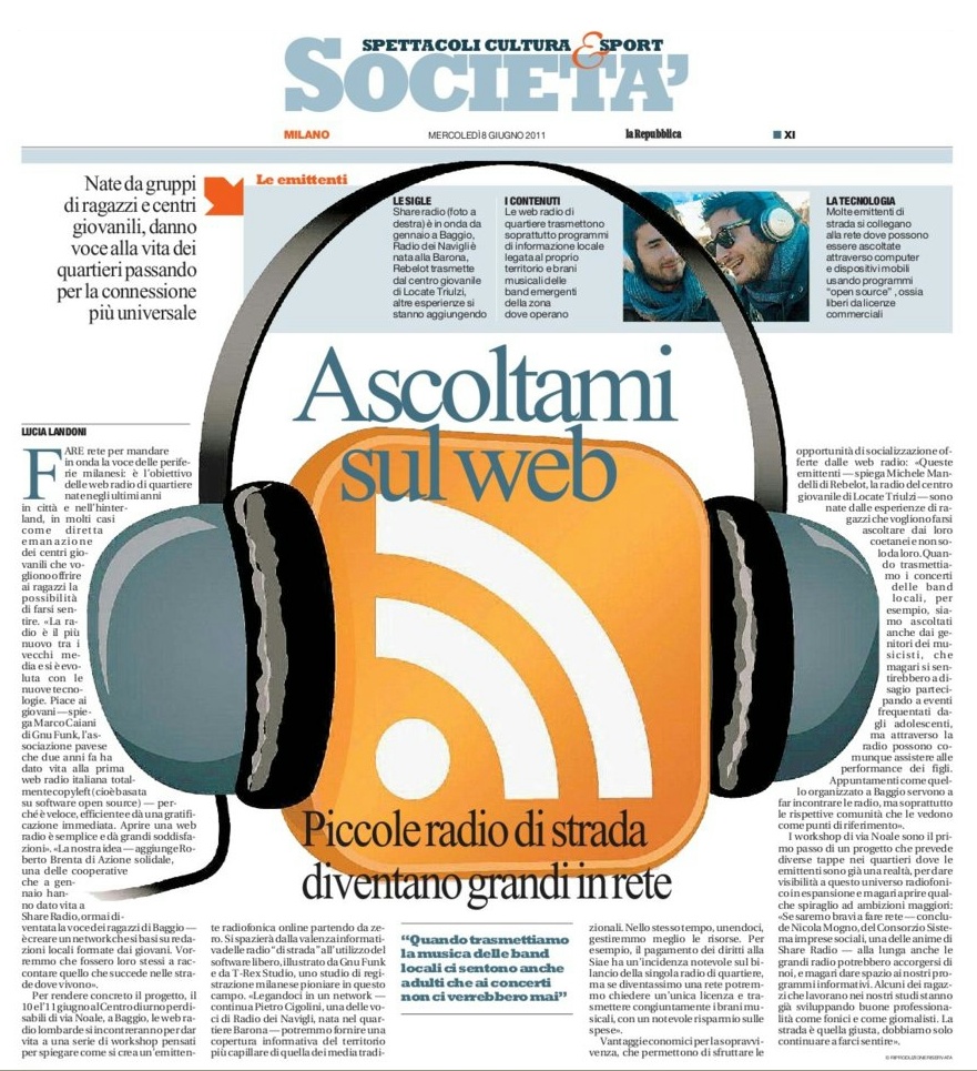 Shareradio è una radio web nata nel 2009 a Baggio, periferia Ovest di Milano, con l’intento di promuovere coesione sociale in città: