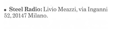 dei primi anni Novanta segnalava Steel Radio operante da Via Inganni 52 a Milano.