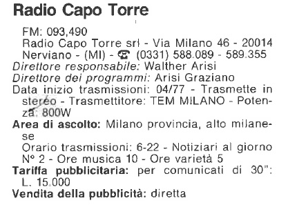 Nonostante la buona strumentazione e le potenzialità tecniche, non ebbe modo di emergere veramente nell'etere dell'alto milanese