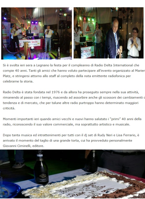 Il 13 Novembre 2016 la radio ha festeggiato i quarant' anni di storia in un locale di Legnano.