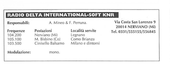 Anno dopo anno però, Radio Delta vede prima una nuova sede a Nerviano, poi nuove attrezzature per la radiodiffusione fino all'uso sistematico