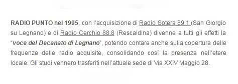 Emittente di estrazione cattolica che negli anni '80 irradiava i suoi programmi da Rescaldina sulla frequenza degli 88,8 mhz .