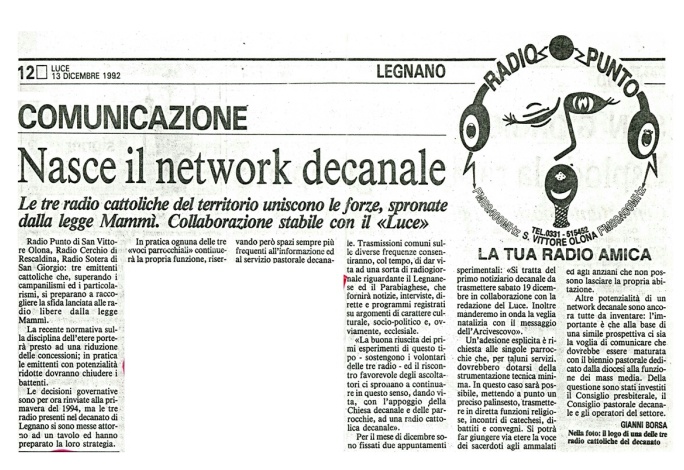 (leggi ritaglio del settimanale "Luce" datato 13.12.1992)