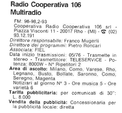 Emittente di impronta cattolica con sede a Rho prima in Via dei Mille 24 e poi in Piazza Visconti 11 .