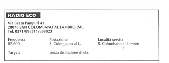 Emittente nata nel Maggio 1980 a San Colombano al Lambro.