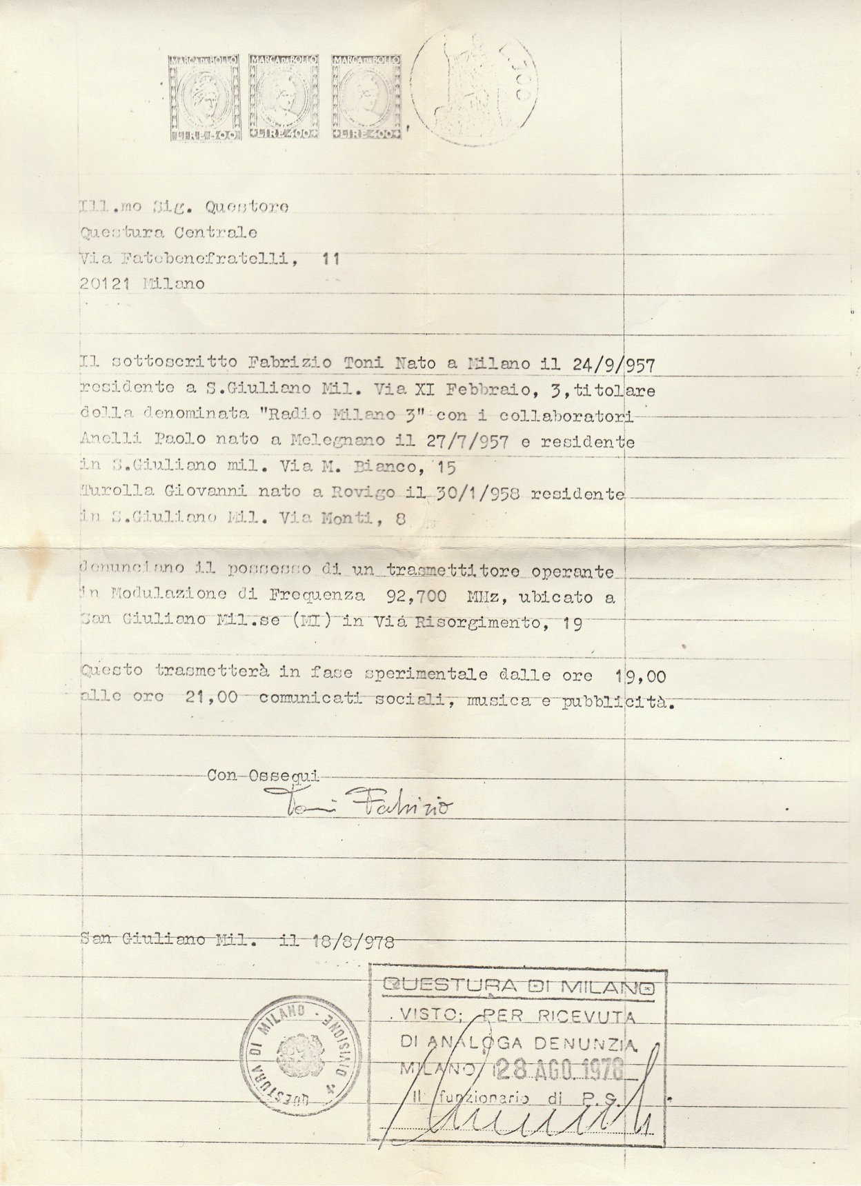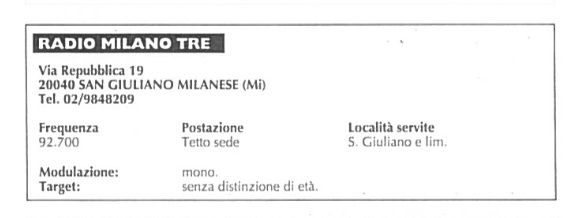 Come ci precisa Paolo Anelli, uno dei fondatori, Radio Milano 3 fu piuttosto itinerante nel territorio di San Giuliano Milanese :