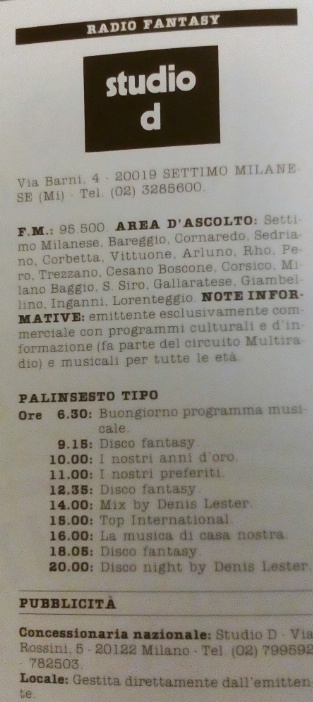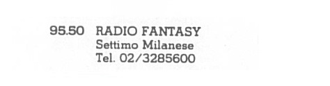Emittente di Settimo Milanese (nonostante quanto rechi l' adesivo) con studi in Via Barni 4 .